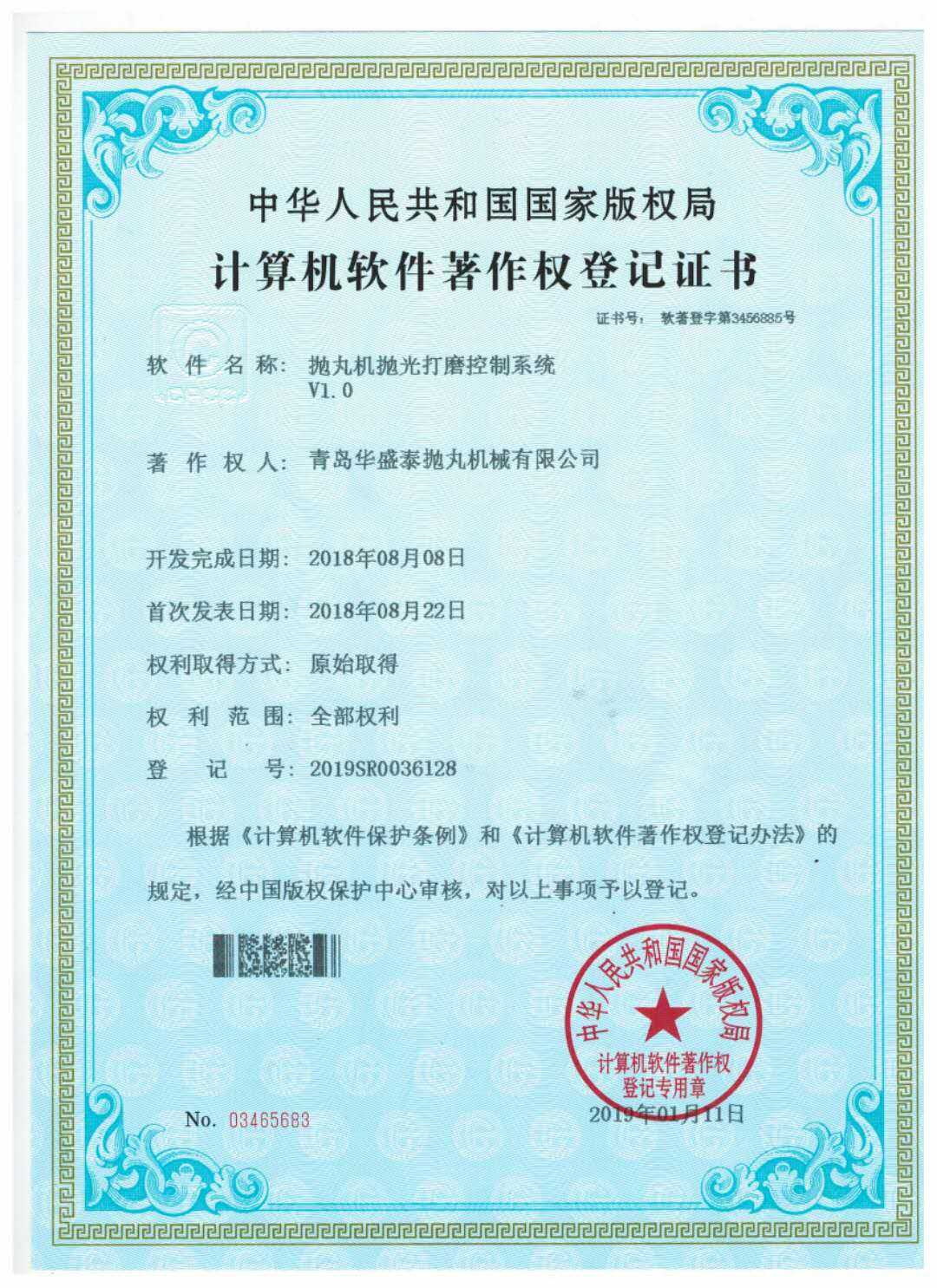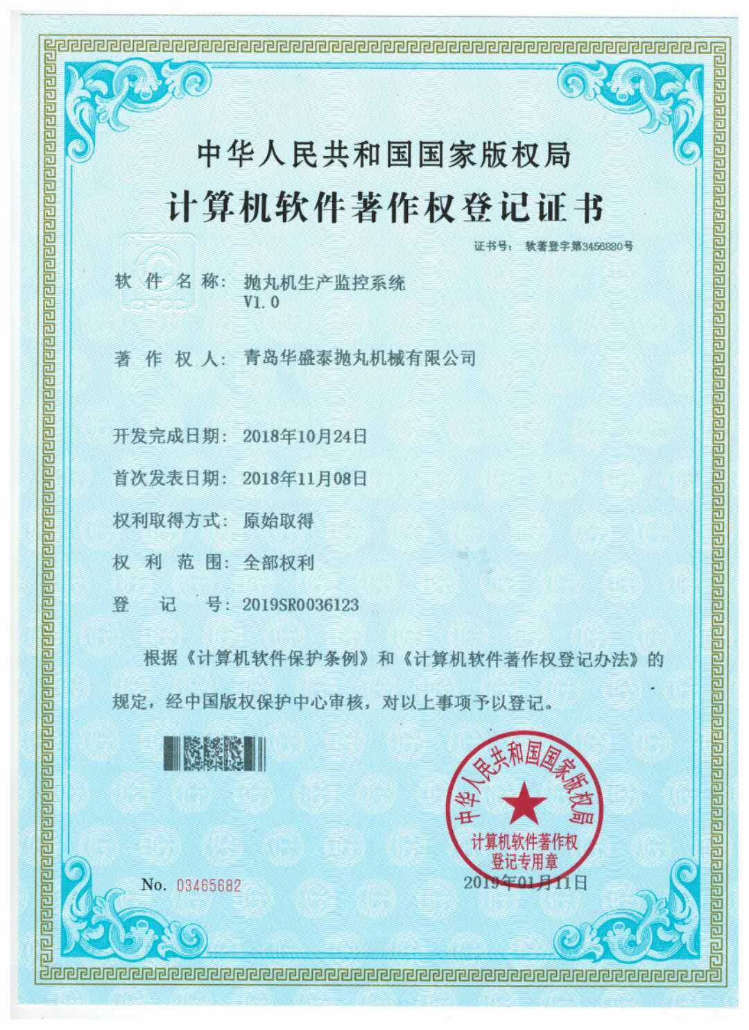 • 計算機軟件著作權登記證書